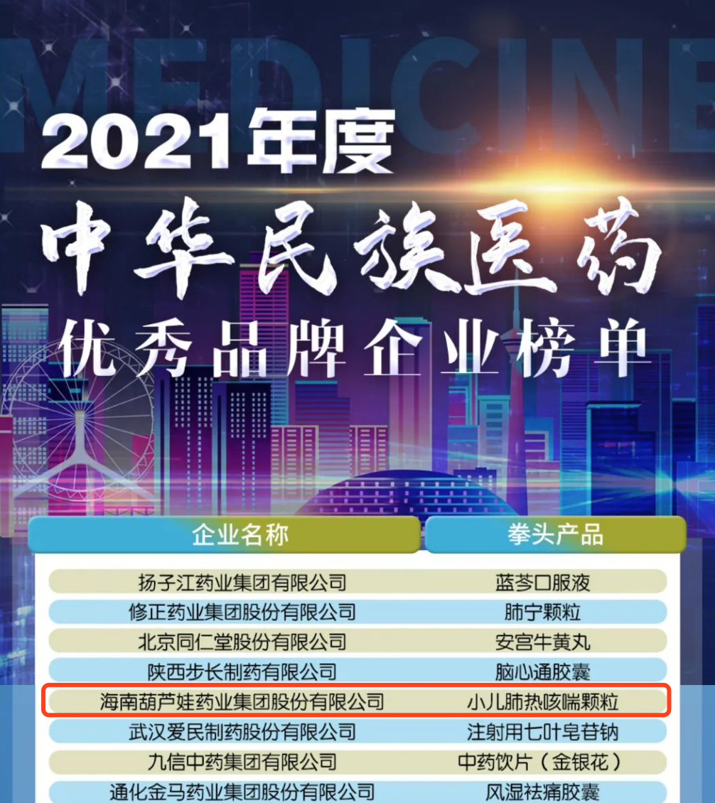 12月29日,全国工商联医药业商会发布了“2021年度中华民族医药优秀品牌企业榜单”,MK体育药业集团凭借黄金单品小儿肺热咳喘颗粒(4克)实力登榜。